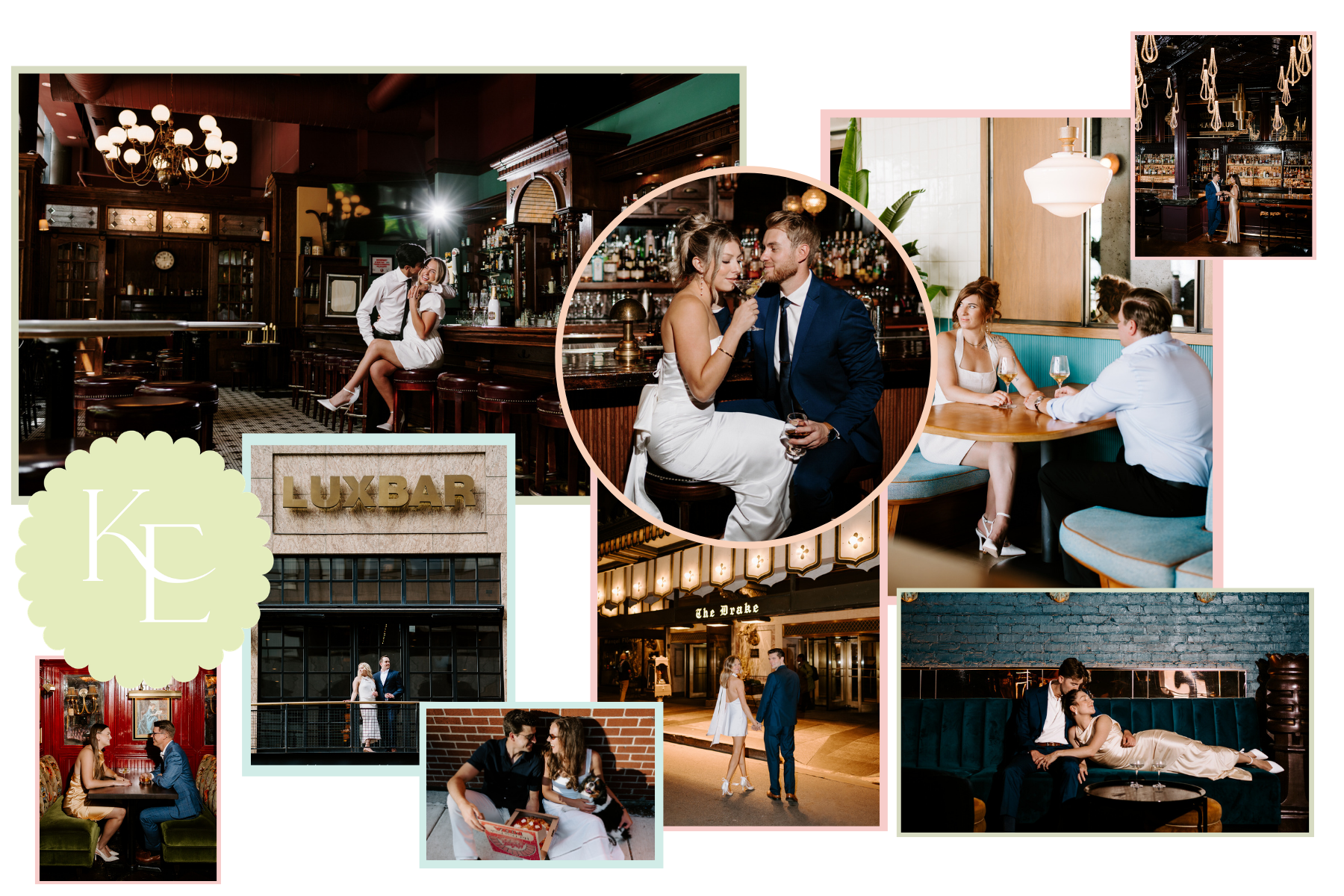 Let's make your session more unique to YOU! Have a favorite bar or restaurant? Maybe the location that you had your first date or any place meaningful to you! We can start there for drinks or apps! You will need to call beforehand and make sure they allow photography. Some places only allow us to go in before they open, some charge fees, + some don't allow lighting equipment (you can just ask if I am allowed to bring in a flash)! If we are going in before they open find out if you will still be able to order a drink because if you want martinis, champagne, etc for a prop sometimes you need to bring your own. Finding out those details beforehand will be super helpful. Also make sure you take down the name + number of whoever you communicate with so there isn't any confusion when we arrive- this has happened to be a couple times. Some will allow us to go in before they open which is always amazing to get photos at an empty bar! I definitely prefer going in before opening so that we aren't disturbing over guests.
