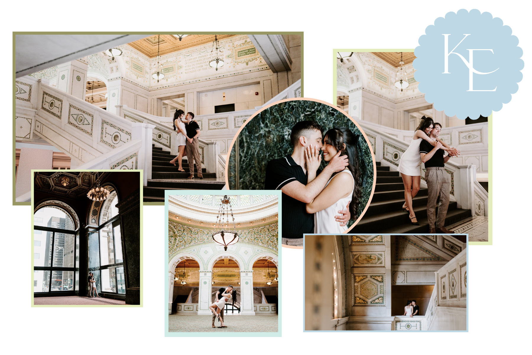 The architecture here is insane- towering columns, art deco details, and that powerful, old Chicago energy. It feels grand, cinematic, and a little bit iconic-in-a-vintage-way. Perfect for couples who want something bold and editorial but still timeless. It’s giving classic city romance!!!!