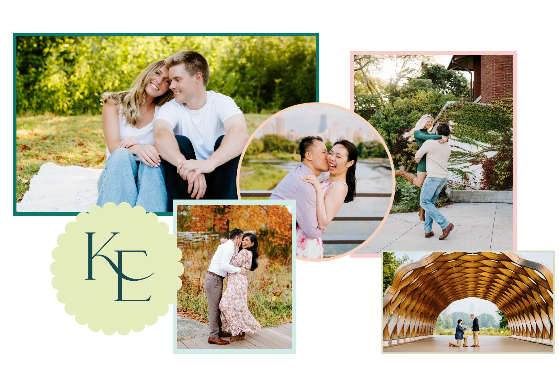 This one feels like a little secret. Tucked along the river near Gibsons Italia, you get skyline views and the L train running by in the background but without the heavy tourist traffic you’ll find at the more “obvious” spots. It’s calm. It’s open. It feels intimate. Because it’s a bit more tucked away, couples instantly relax here. No big crowds watching. No waiting for strangers to clear the frame. When the L rolls by mid-shot? Chef’s kiss. Urban. Romantic. Effortless. And low-key one of the best hidden gems in the city