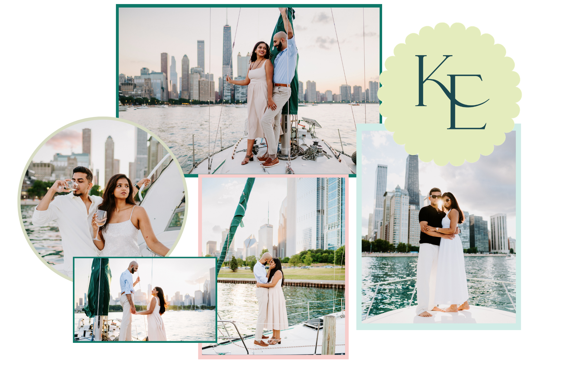 Okay… this is main character energy on another level. Out on the water with the Chicago skyline behind you? Unreal. You get open lake views, wind in your hair, the sun reflecting off the water!! It feels romantic, a little adventurous, and completely unforgettable. It’s perfect for couples who want movement and something a little different. Champagne pop on the bow? Walking barefoot on deck? Sunset glow over the skyline? Say less. Bold. Playful. So wildly Chicago. You'd have to rent the boat from a company and someone would drive it for us. If you get motion sickness, this one isn't for you. Also making sure you are comfortable + confident moving around on a boat and not afraid of the wind!